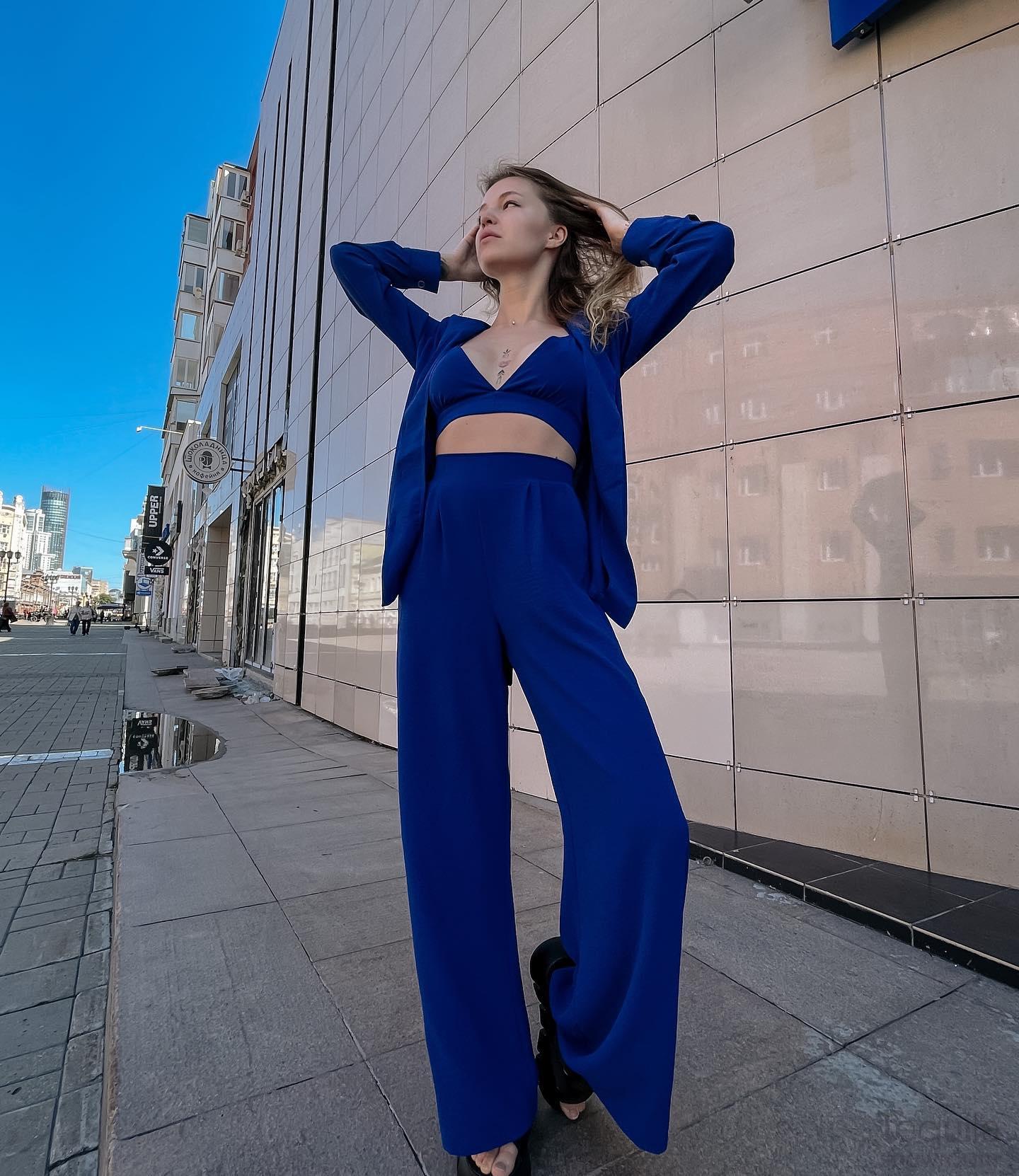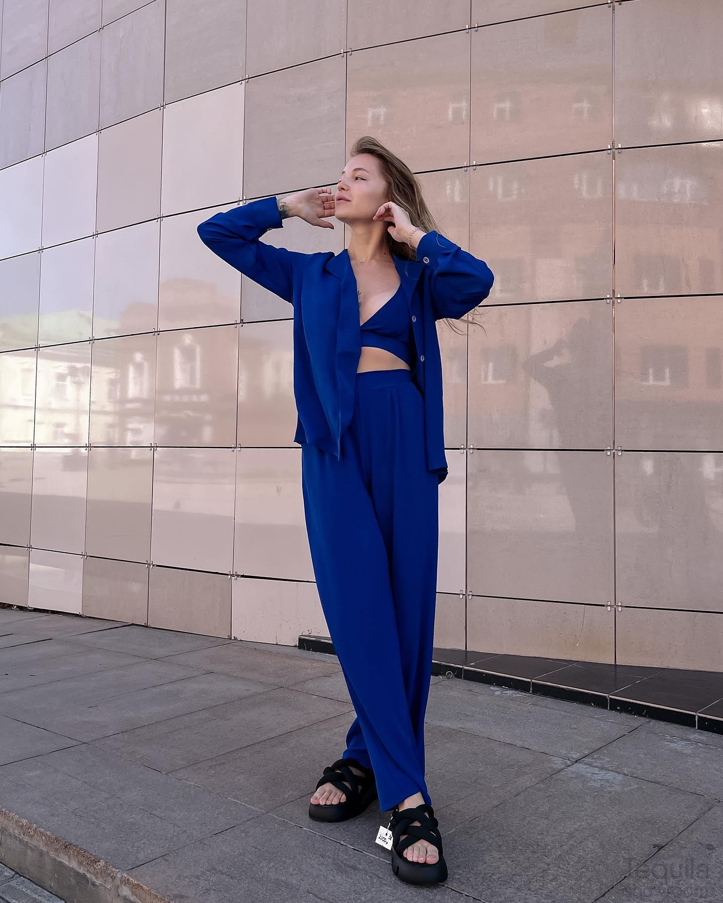 • -Костюмы тройки в составе которых пиджак, брюки и топ;