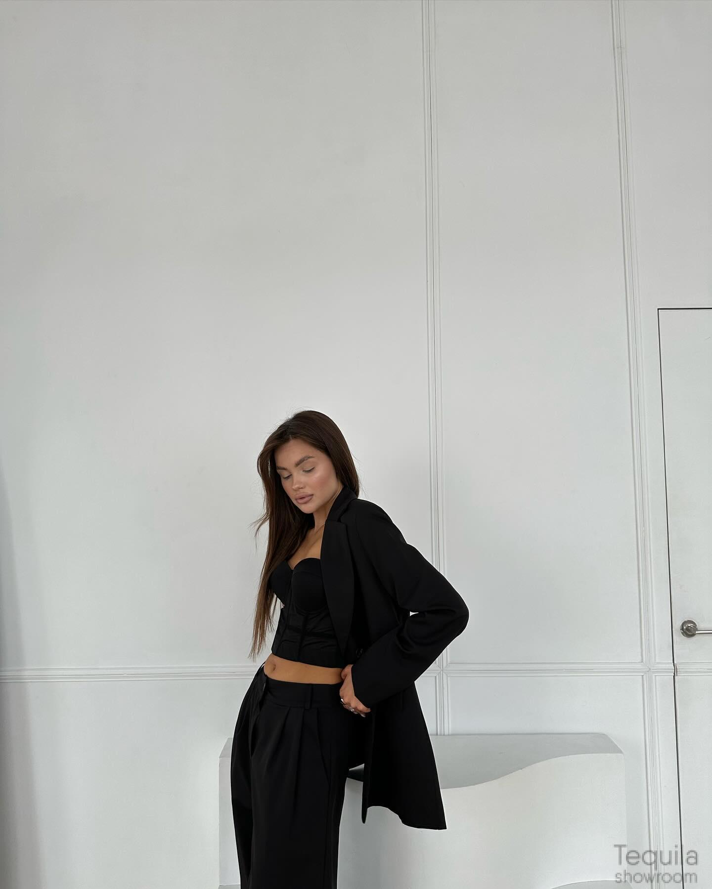 • -Костюмы тройки в составе которых пиджак, брюки и топ;