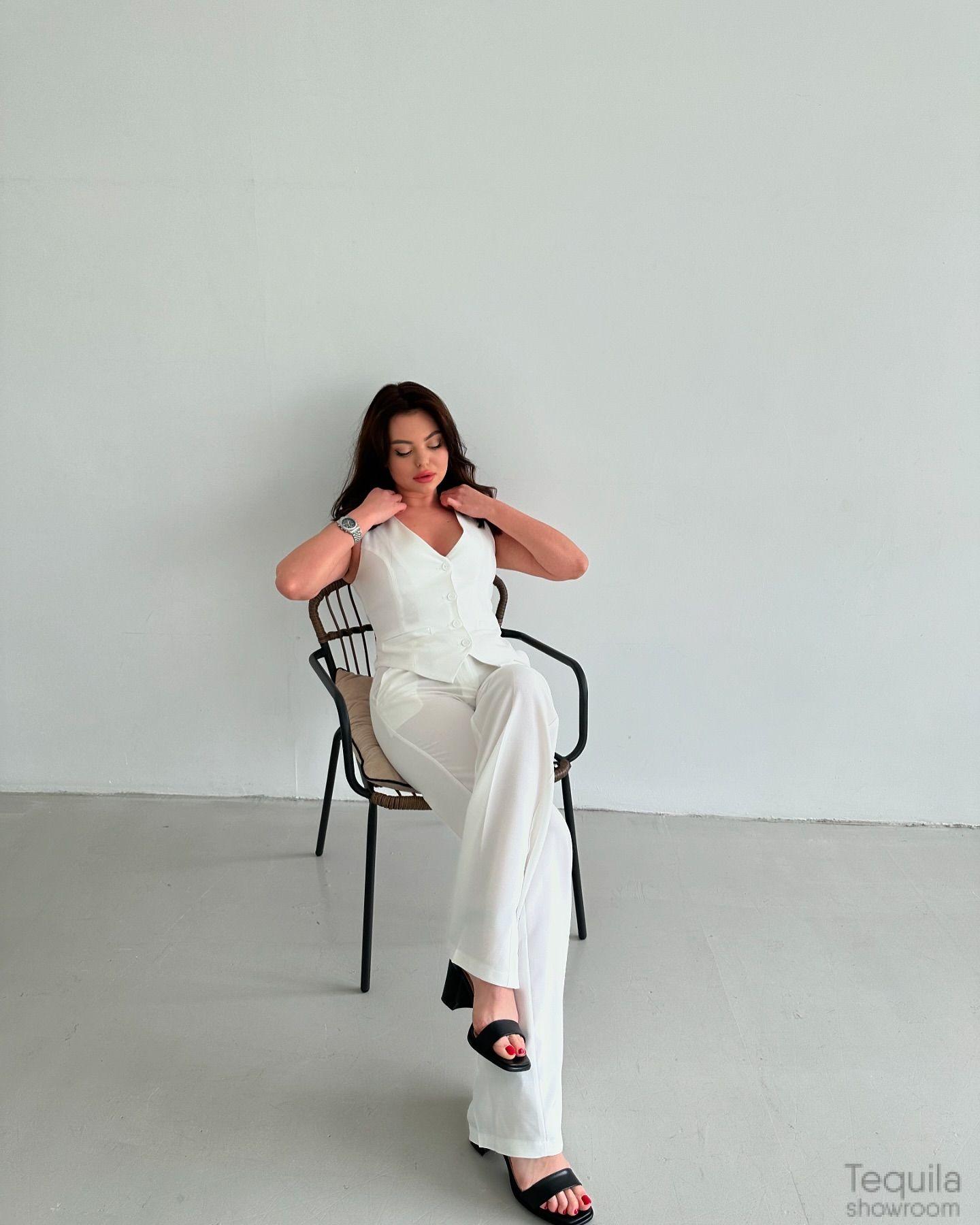 До лета всего 2 дня🙌 Легкий, летний костюм с жилеткой обеспечит комфорт и стильный образ🤍 2799₽(42,44)