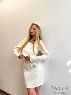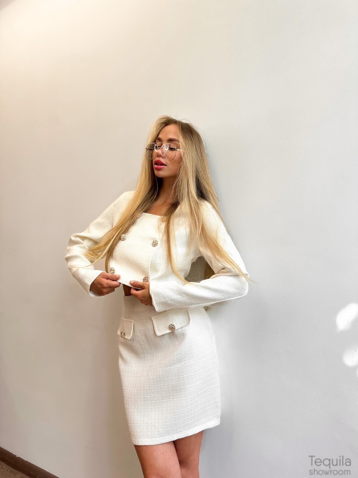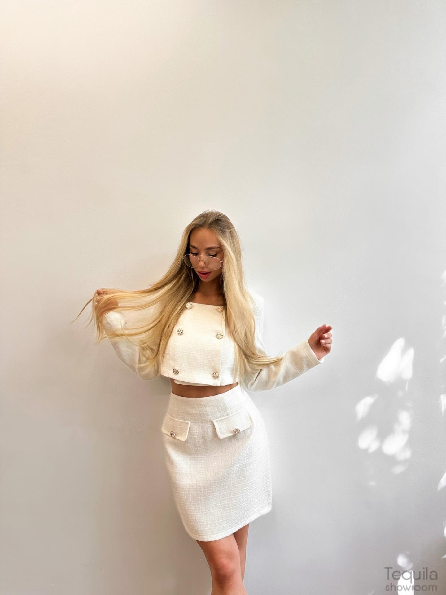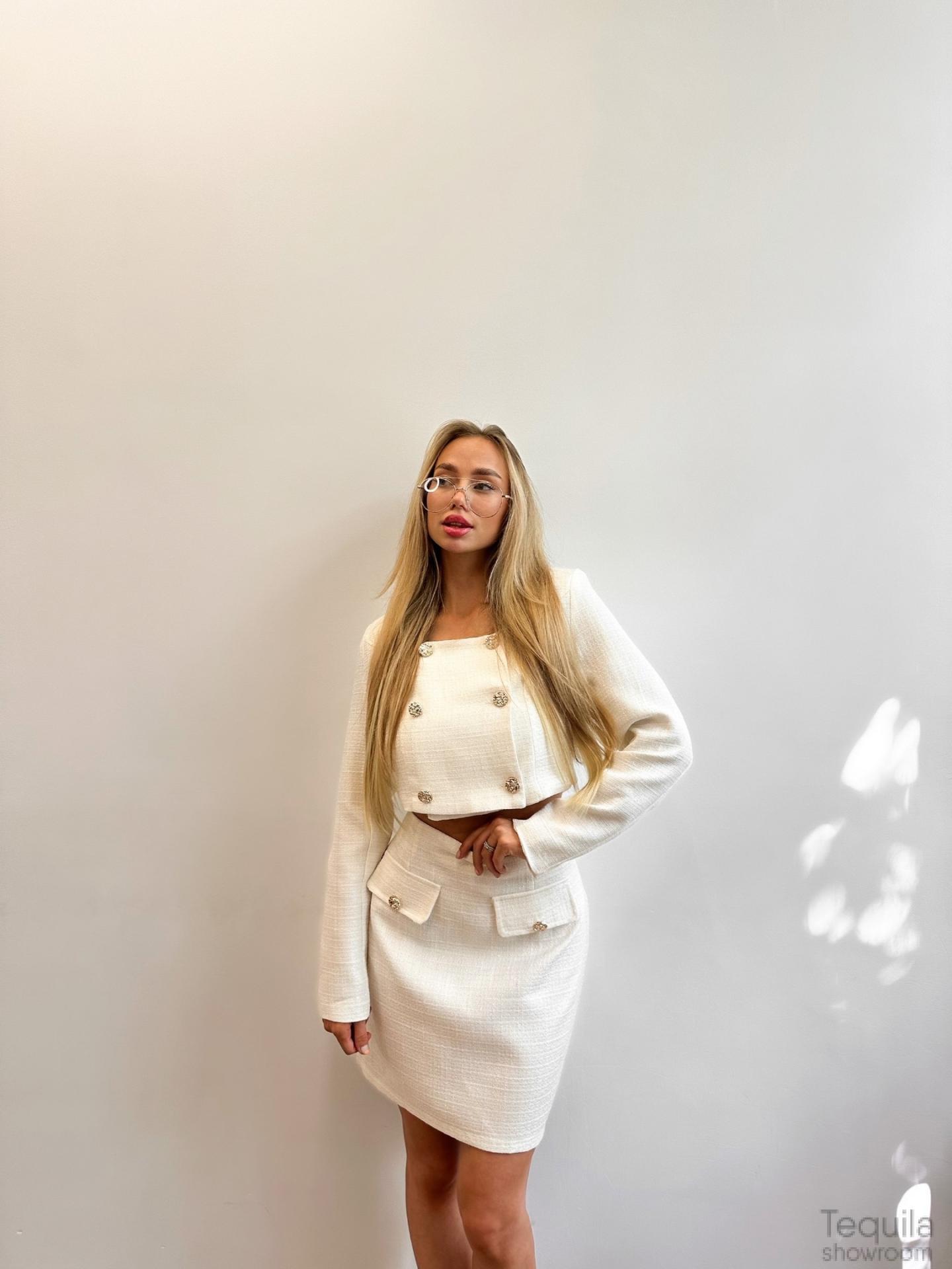 Шикарный костюм в белом цвете с юбкой