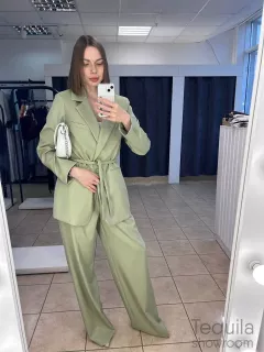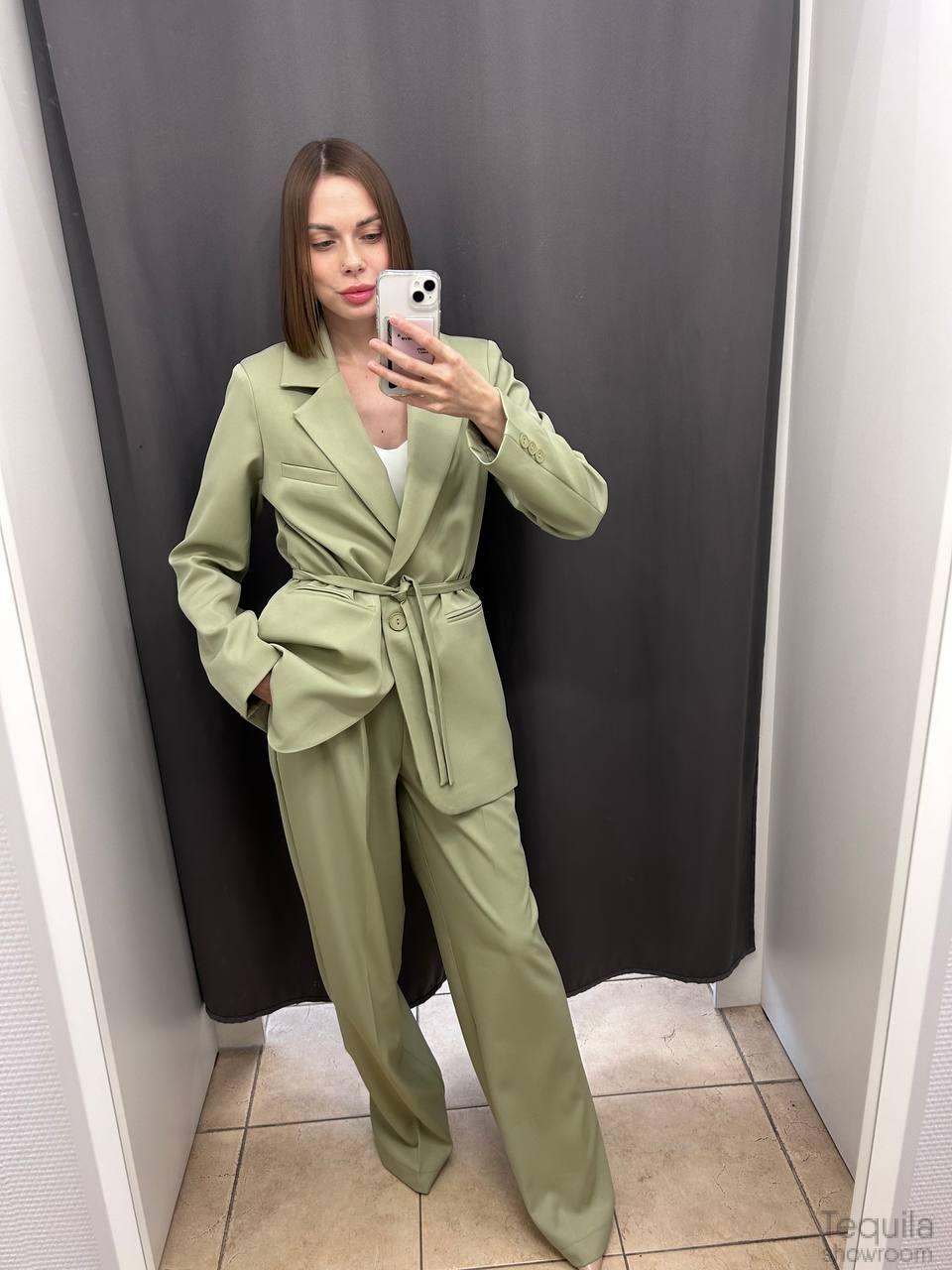 Костюм брючный в оливковом цвете, идеальная посадка приятный материал